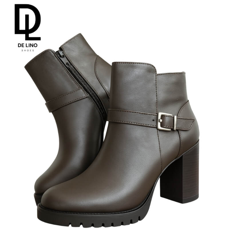 Botín de piel para mujer con tacón cómodo, hebilla ajustable y plantilla confort. Estilo artesanal mexicano para uso casual o formal.